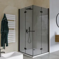 Box doccia 105x105 cm doppio soffietto vetro anticalcare fumè e profilo nero opaco 195h - Flexy