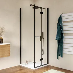 Box doccia 75x75 cm a soffietto vetro anticalcare trasparente e profilo nero opaco 195h - Flexy