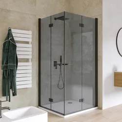 Box doccia 95x105 cm doppio soffietto vetro anticalcare fumè e profilo nero opaco 195h - Flexy