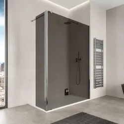 Box doccia Walk In 130 cm in vetro temperato fumè anticalcare e anta girevole 45 cm - Keep
