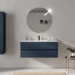 Mobile bagno sospeso 120 cm blu esotico con 2 cassetti e lavabo con specchio - Cuki