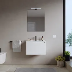 Mobile bagno sospeso 60 cm bianco opaco con lavabo e specchio - Koda