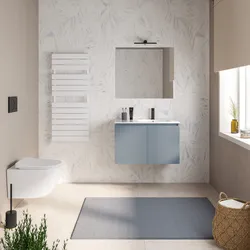 Mobile bagno sospeso 80 cm carta da zucchero con ante e lavabo dx con specchio - Cuki