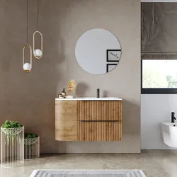 Mobile bagno sospeso 90 cm due cassetti rovere africa effetto cannettato con anta e lavabo dx - Lameck