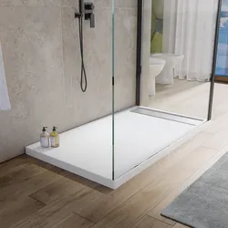 Piatto doccia 140x70 cm in acrilico bianco con canalina in acciaio - Denb