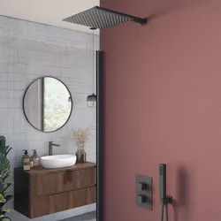 Set incasso doccia termostatico con deviatore con braccio doccia 40 cm e soffione 30x30 cm nero spazzolato – Kyria
