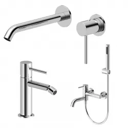 Set miscelatore lavabo a muro e bidet con esterno vasca cromo – Oasis