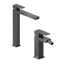 Set miscelatore lavabo alto e bidet nero spazzolato – Kyria