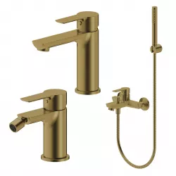 Set miscelatore lavabo e bidet con esterno vasca oro spazzolato – Key