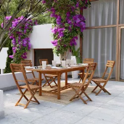 Set pranzo con tavolo allungabile 180/240x100 cm e 6 sedie pieghevoli in legno di acacia - Paja