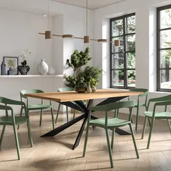 Tavolo da pranzo 180x90 cm top effetto rovere gold 38 mm e gambe incrociate in metallo nero - Manty
